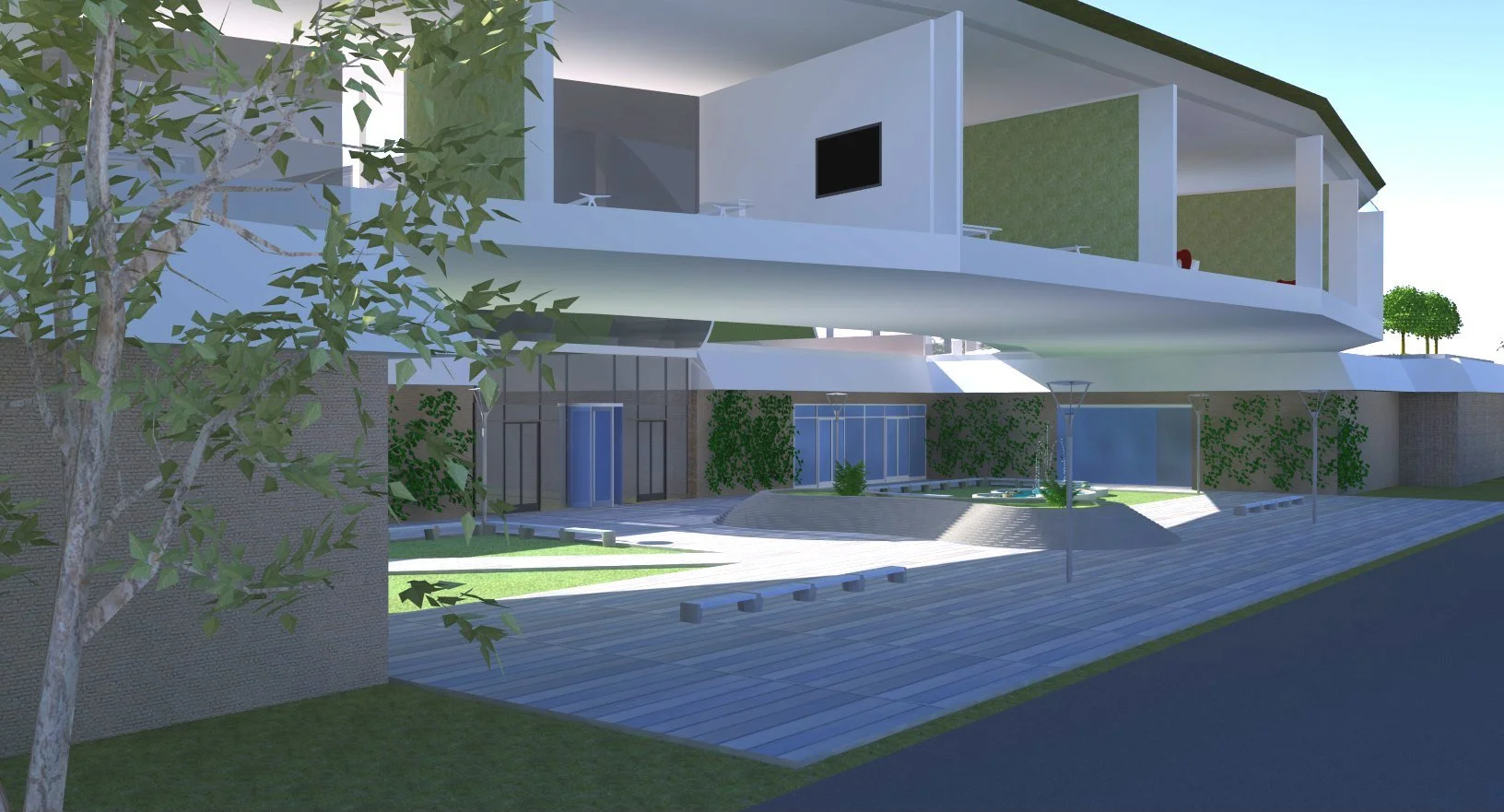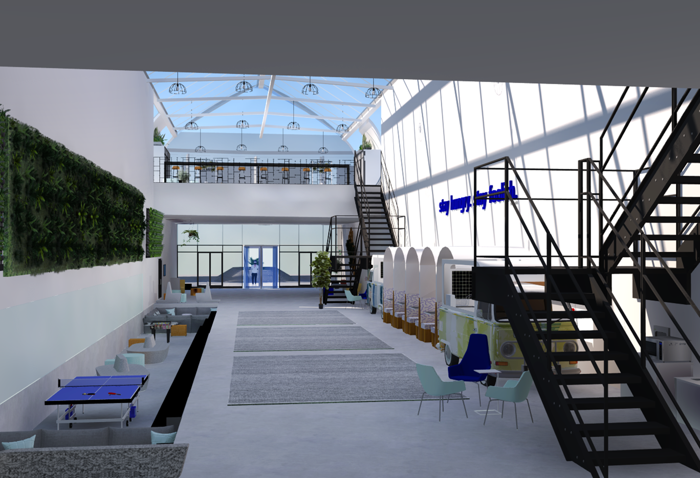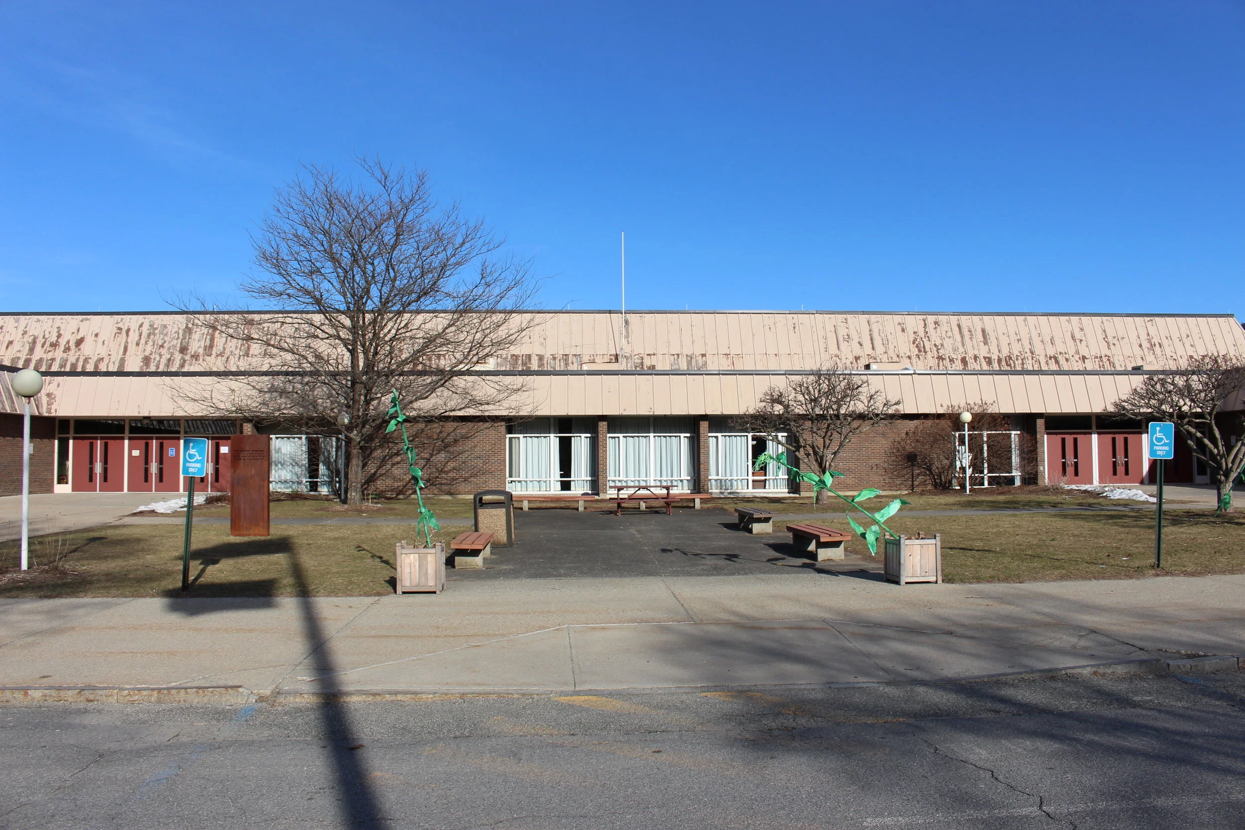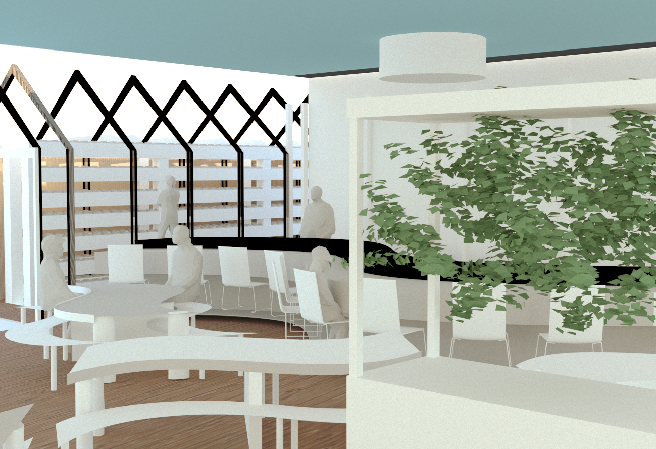 Our architectural advisor Mitch observed early in our design process that the school we chose to redesign bears a striking resemblance to a turtle. We embraced this imagery, and added an open carapace, or shell, to it’s back--the Ring. The new first-floor plan places an emphasis on open layouts with lofted spaces to help lift and expand students’ imagination. This is captured both by the expansive Student Atrium which replaced the former music rooms in the middle of the school, and by the redesigned limbs that each have large central gathering spaces. To create the central passageway for the Atrium the music rooms were moved to the former library space behind the head of the school, and the library was elevated to the second floor. Each leg of the turtle houses a unique identifying pillar (bolded in black) to support the Ring.